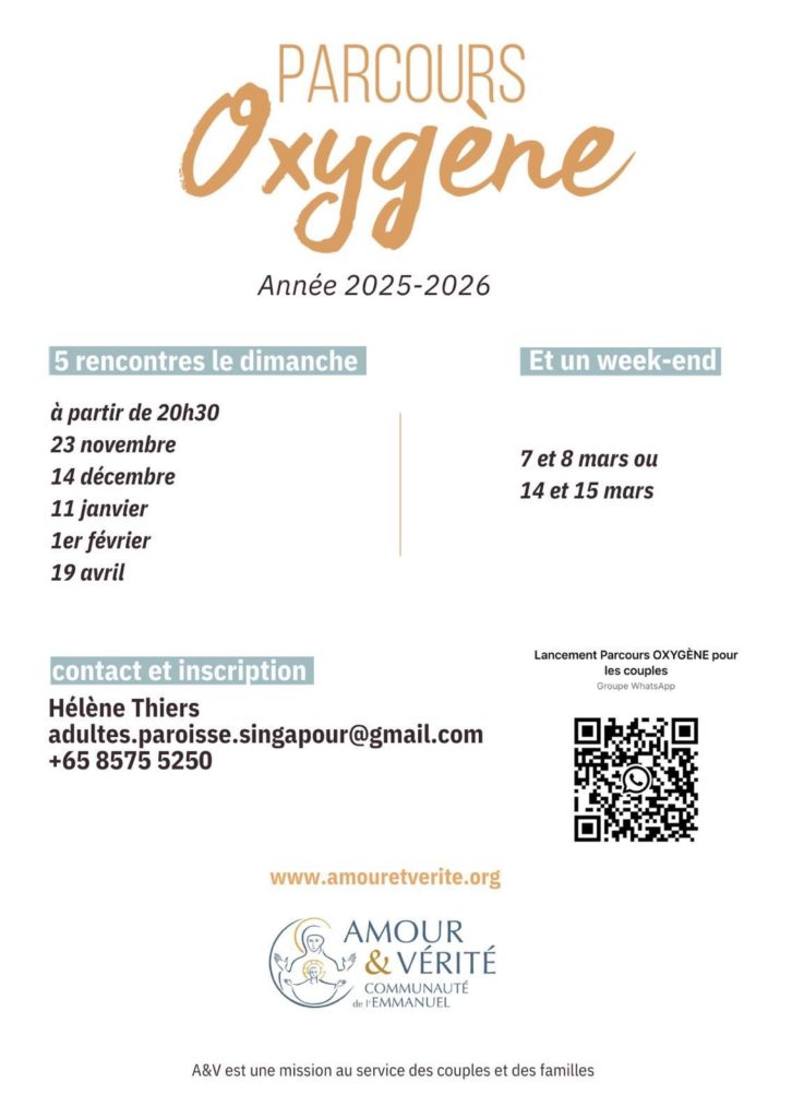 Vous êtes mariés depuis 10 ans et plus. Vous avez envie de redonner souffle et élan à votre couple ? La CCFS vous propose le parcours OXYGÈNE :