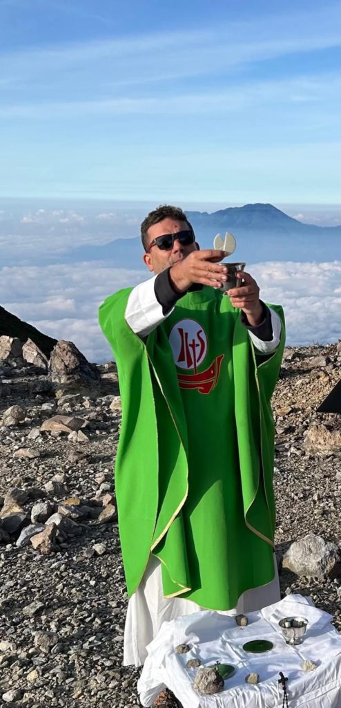 Dès notre cercle de parole sur le sol froid de l’aéroport, dès l’arrivée à Java et ses villages simples et beaux, dès notre arrivée au pied des hauts volcans, je sais, nous savons toutes, que cette bienveillance, cette confiance qui nous unissent, ne viennent pas de nous, mais de Dieu. Bien vite, les bandes de « copines » n’ont plus aucune importance, car nous échangeons avec celle que le hasard des rythmes de marche et des places dans les tentes met sur notre chemin. Chaque conversation est comme baignée de l’amour de Dieu, un avant goût de sa compassion infinie. La majesté des sommets, la paix du couvent qui nous accueille ensuite, sont aussi des signes de sa présence.